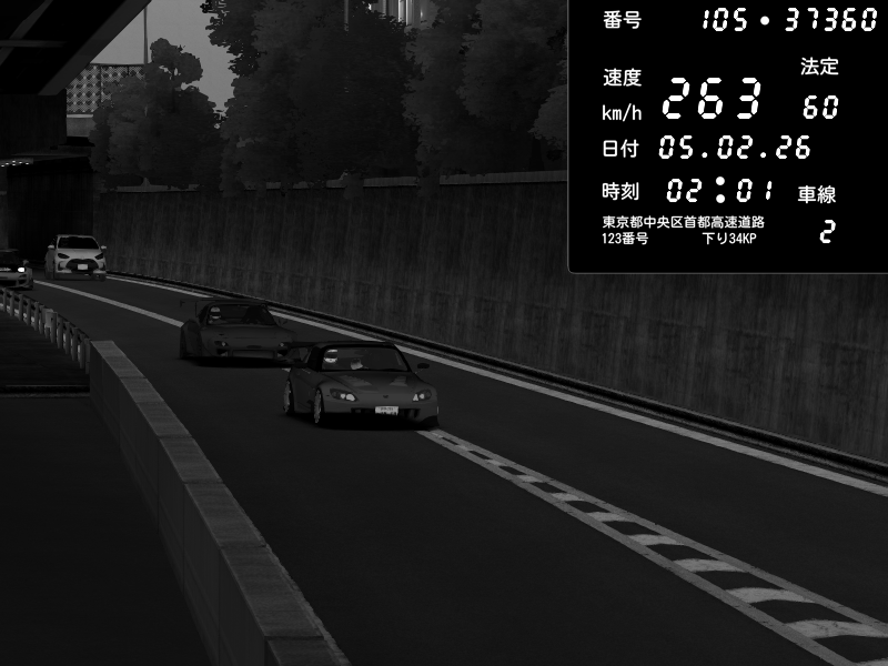 | 2026/02/05 02:06 | C1外回り 京橋 | 263 / 60 km/h | SSSS | Honda S2000 (AP2 - Legendary) | CAPTURE |