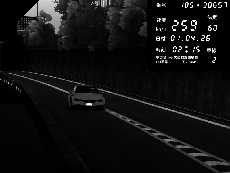 | 2026/03/31 15:21 | C1外回り 京橋 | 254 / 60 km/h | Mixed_P5K | BMW M4 crash.Sp Varis Widebody | CAPTURE |