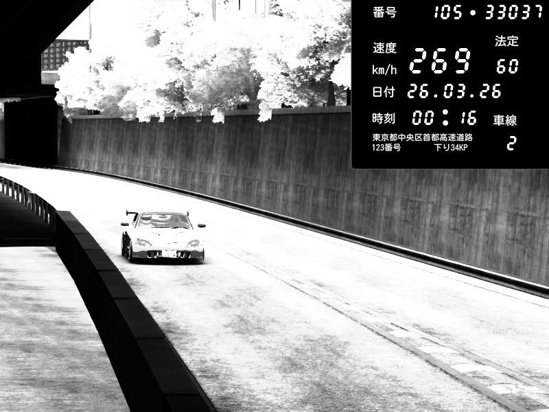 | 2026/03/25 10:24 | C1外回り 京橋 | 235 / 60 km/h | HiRO.T-GT改P500 | Honda S2000 Turbo GT1 Amuse (AP1) | CAPTURE |