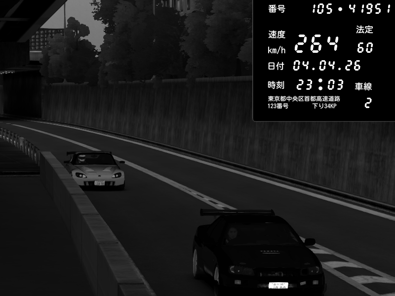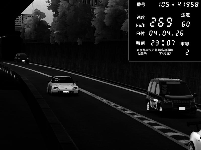 | 2026/04/04 15:56 | C1外回り 京橋 | 258 / 60 km/h | yuzu | Honda S2000 (AP2 - Legendary) | CAPTURE |