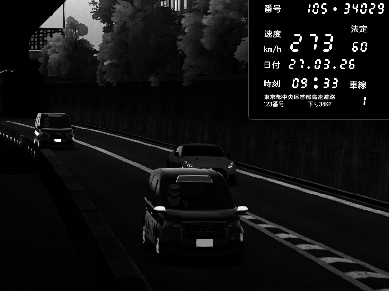 | 2026/03/27 09:33 | C1外回り 京橋 | 273 / 60 km/h | top speed | Nissan GT-R NISMO 2017 | CAPTURE |