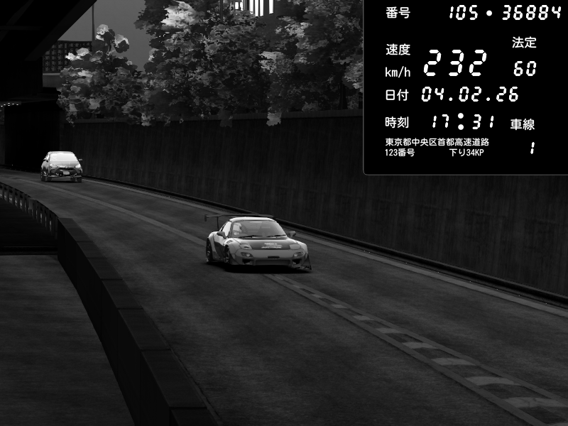 | 2026/02/05 01:54 | C1外回り 京橋 | 231 / 60 km/h | my1l | Mazda RX-7 FD3S FEED Afflux GT3 | CAPTURE |