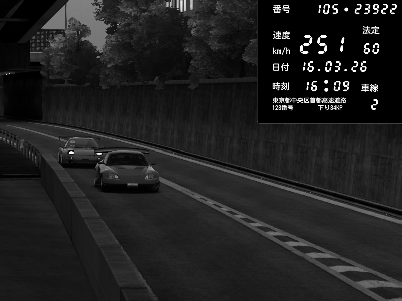 | 2026/03/16 16:09 | C1外回り 京橋 | 251 / 60 km/h | munyu0122 | Honda S2000 Turbo GT1 Amuse (AP1) | CAPTURE |