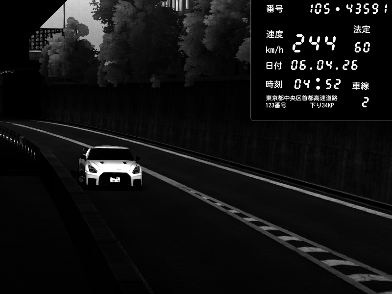 | 2026/04/07 03:40 | C1外回り 京橋 | 244 / 60 km/h | MH | Honda S2000 (AP2 - Legendary) | CAPTURE |