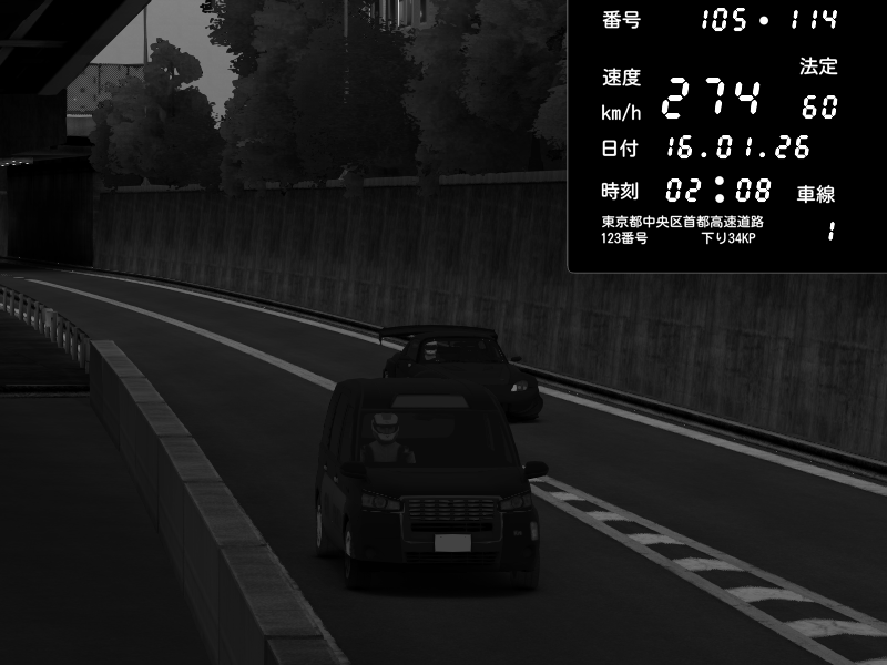| 2026/01/15 21:05 | C1外回り 京橋 | 204 / 60 km/h | KikokuRori | Pit Road M - Mitsubishi GTO Twin Turbo | CAPTURE |