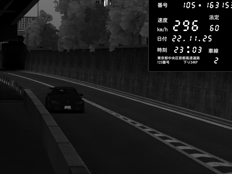 | 2025/11/22 23:03 | C1外回り 京橋 | 296 / 60 km/h | att *:) | BMW M4 crash.Sp Varis Widebody | CAPTURE |