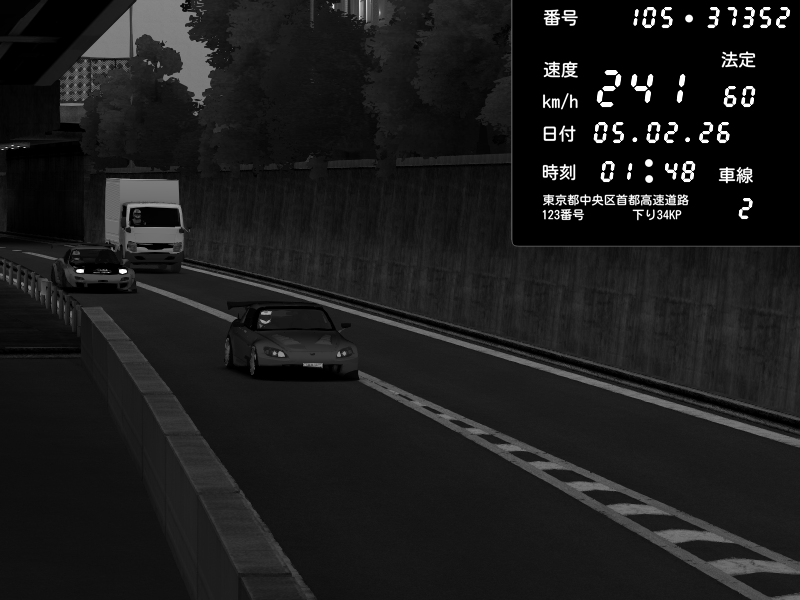 | 2026/02/05 01:48 | C1外回り 京橋 | 241 / 60 km/h | SSSS | Honda S2000 (AP2 - Legendary) | CAPTURE |
