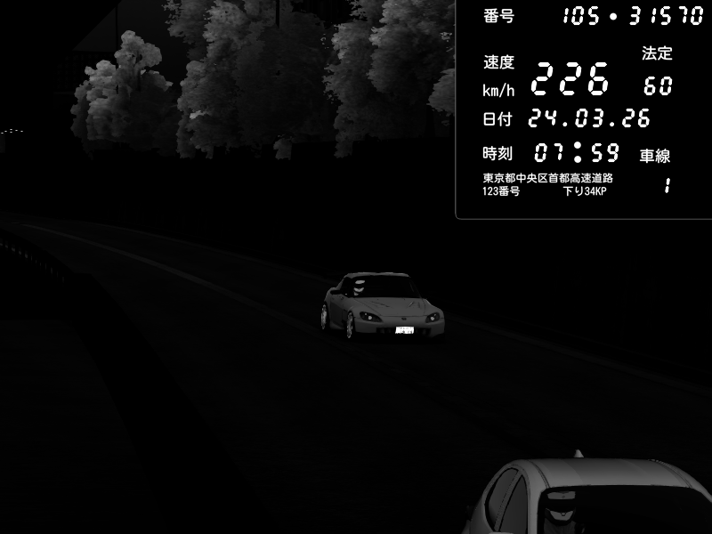 | 2026/03/24 04:29 | C1外回り 京橋 | 236 / 60 km/h | e.daman.rin | Honda S2000 (AP2 - Legendary) | CAPTURE |