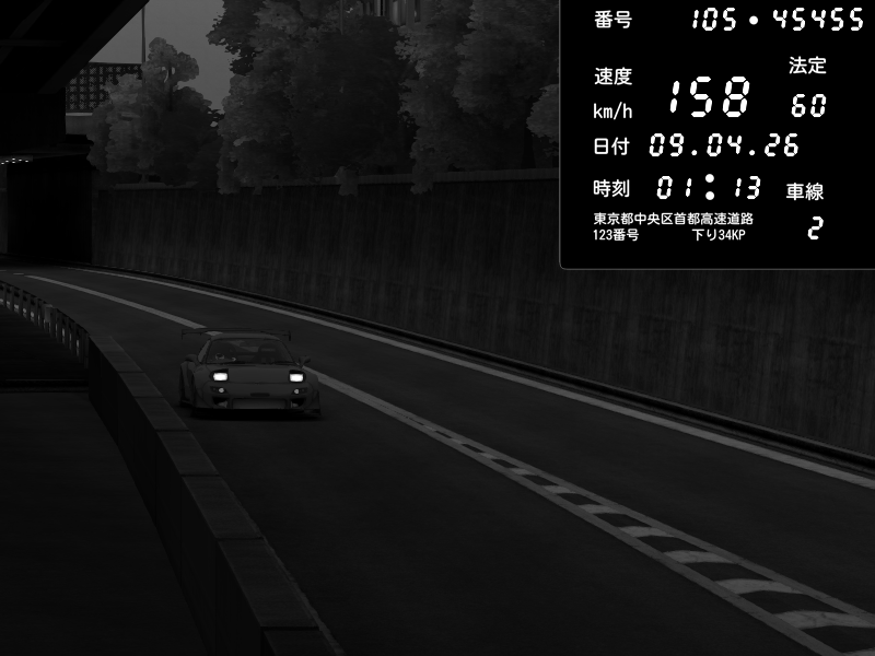 | 2026/04/09 01:13 | C1外回り 京橋 | 158 / 60 km/h | ikuma | Mazda RX-7 FD3S FEED Afflux GT3 | CAPTURE |