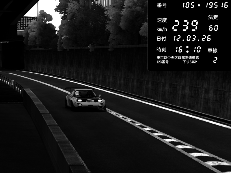 | 2026/03/12 15:45 | C1外回り 京橋 | 239 / 60 km/h | kyuru | Mazda RX-7 FD3S FEED Afflux GT3 | CAPTURE |