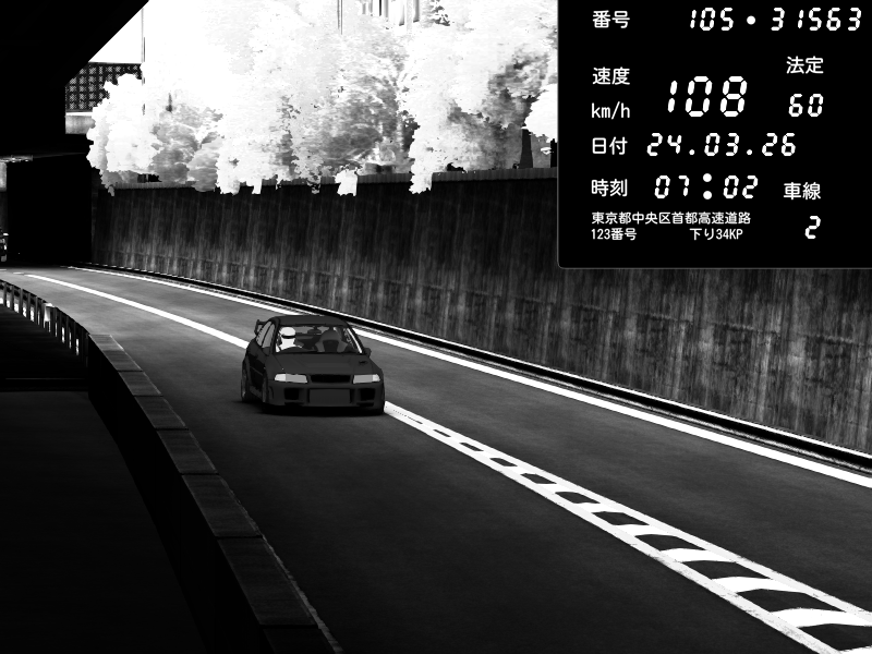 | 2026/03/24 07:02 | C1外回り 京橋 | 108 / 60 km/h | MASUO-JP | Mitsubishi Lancer Evolution V Wangan Spec | CAPTURE |