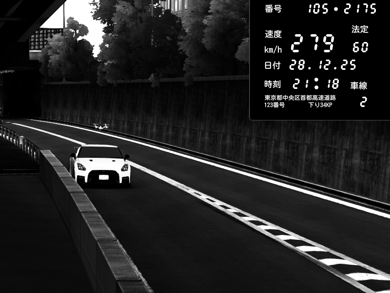 | 2025/12/28 21:34 | C1外回り 京橋 | 277 / 60 km/h | rsp | Nissan GT-R NISMO 2017 | CAPTURE |