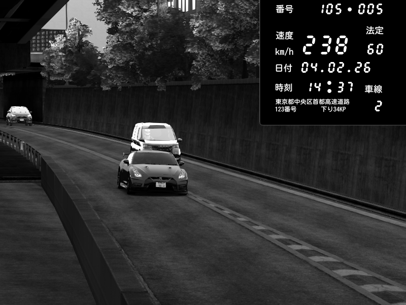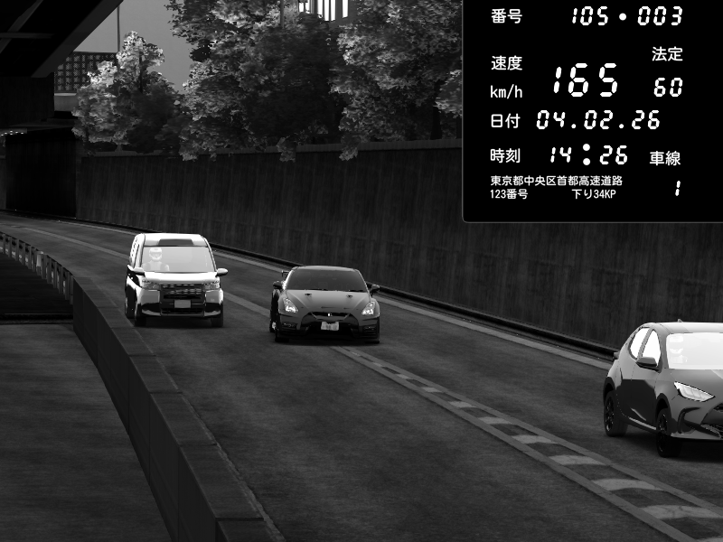 | 2026/02/05 03:06 | C1外回り 京橋 | 231 / 60 km/h | snow_mogul | Nissan GT-R NISMO 2017 | CAPTURE |