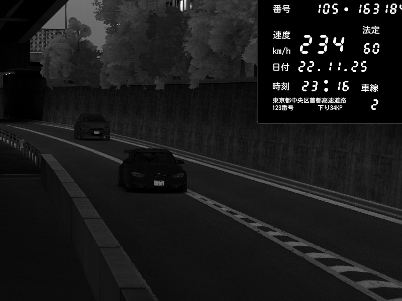 | 2025/11/22 23:05 | C1外回り 京橋 | 257 / 60 km/h | GereGere | Porsche 911 GT3 RS | CAPTURE |