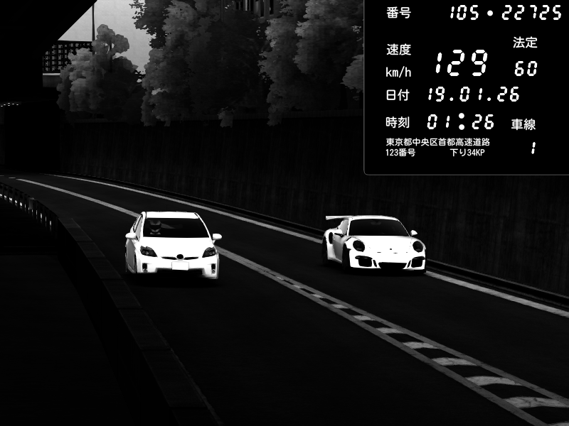 | 2026/01/19 01:26 | C1外回り 京橋 | 129 / 60 km/h | Keylow5 | Porsche 911 GT3 RS | CAPTURE |