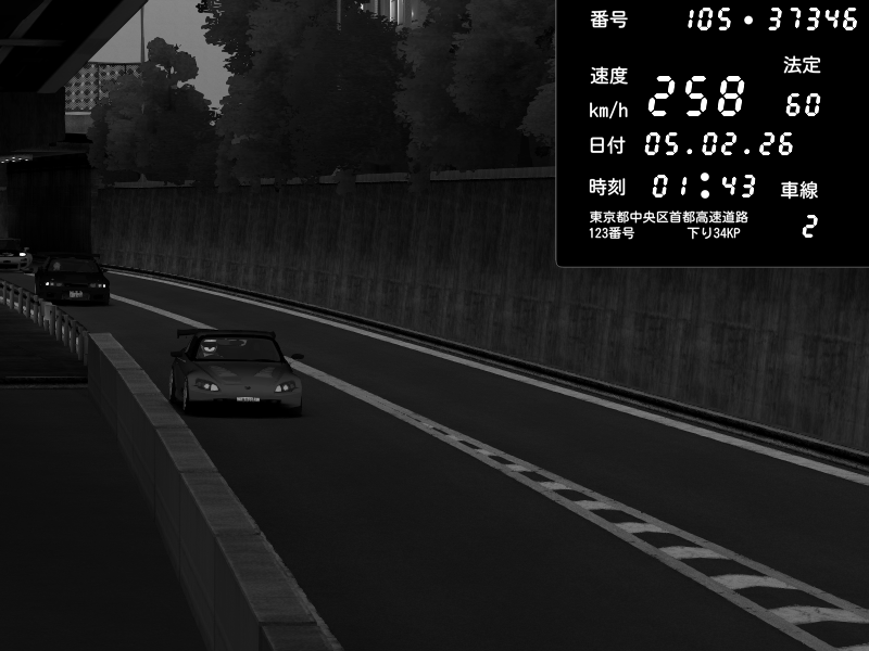 | 2026/02/05 01:43 | C1外回り 京橋 | 258 / 60 km/h | SSSS | Honda S2000 (AP2 - Legendary) | CAPTURE |