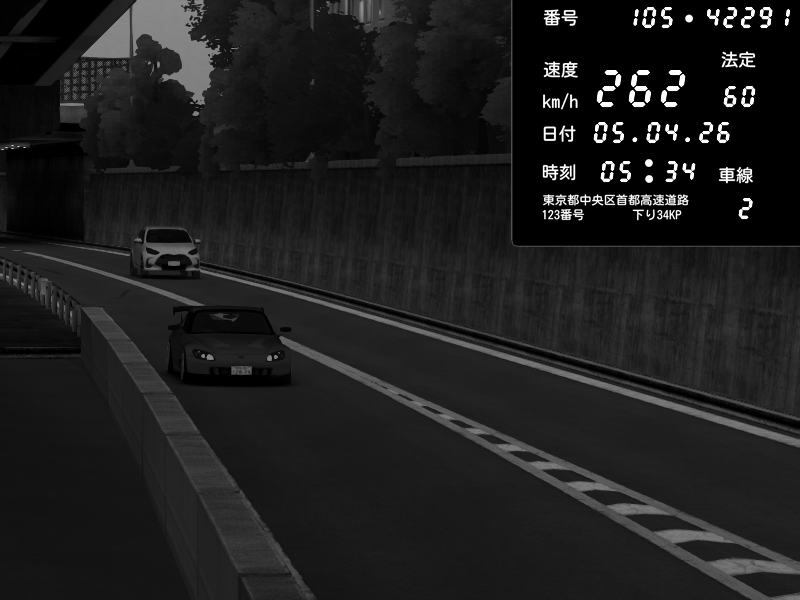| 2026/04/06 04:38 | C1外回り 京橋 | 237 / 60 km/h | badjoraz_piquinoti | Honda S2000 (AP2 - Legendary) | CAPTURE |