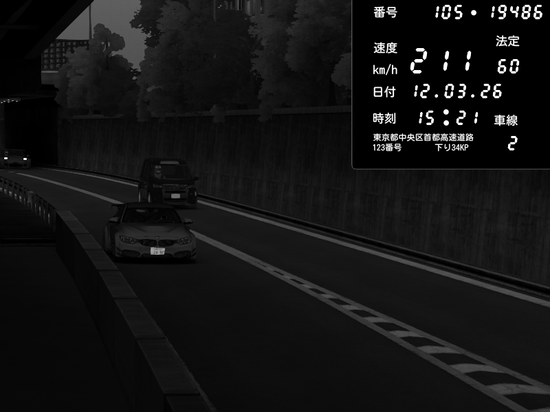 | 2026/03/12 15:21 | C1外回り 京橋 | 211 / 60 km/h | mamorie86 | BMW M4 crash.Sp Varis Widebody | CAPTURE |