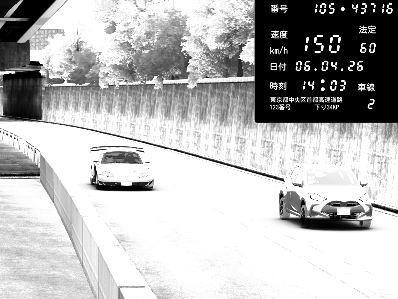 | 2026/04/07 03:00 | C1外回り 京橋 | 272 / 60 km/h | Retuski | Mazda RX-7 FD3S FEED Afflux GT3 | CAPTURE |