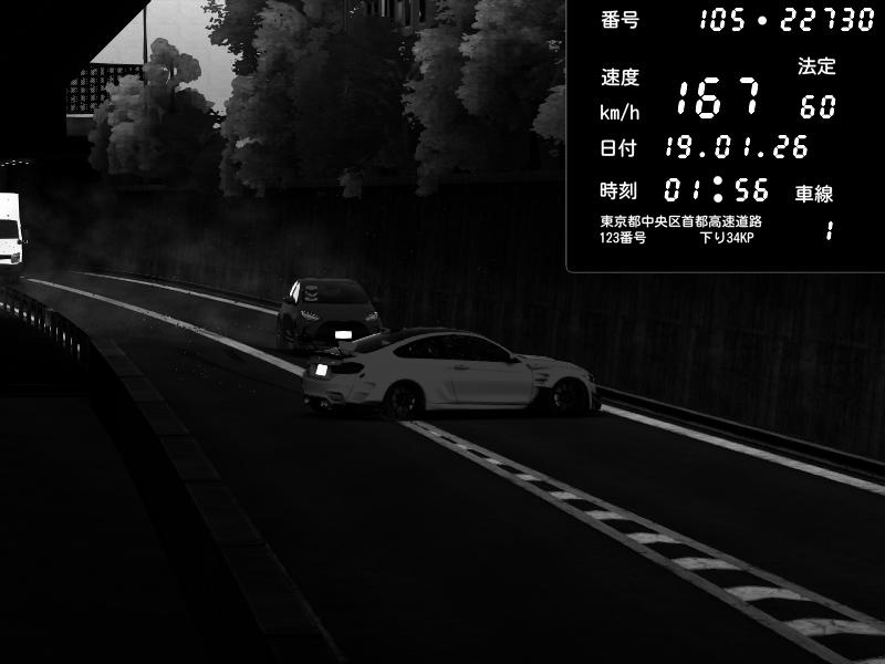| 2026/01/19 01:31 | C1外回り 京橋 | 293 / 60 km/h | livetune | BMW M4 crash.Sp Varis Widebody | CAPTURE |
