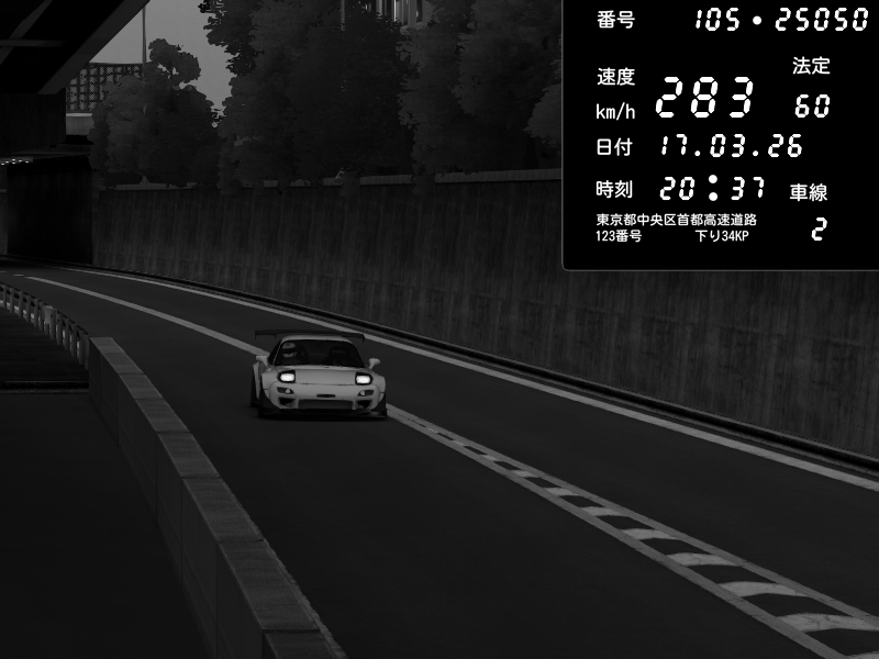 | 2026/03/17 20:11 | C1外回り 京橋 | 267 / 60 km/h | Pad | Mazda RX-7 FD3S FEED Afflux GT3 | CAPTURE |