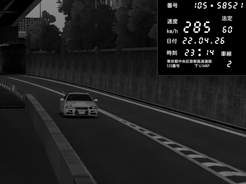 | 2026/04/22 01:02 | C1外回り 京橋 | 265 / 60 km/h | 2534yuu | Nissan Skyline GT-R R34 Nismo Omori Factory S1 | CAPTURE |