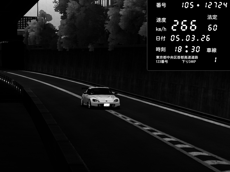 | 2026/03/06 00:44 | C1外回り 京橋 | 266 / 60 km/h | sizu way | Honda S2000 (AP2 - Legendary) | CAPTURE |