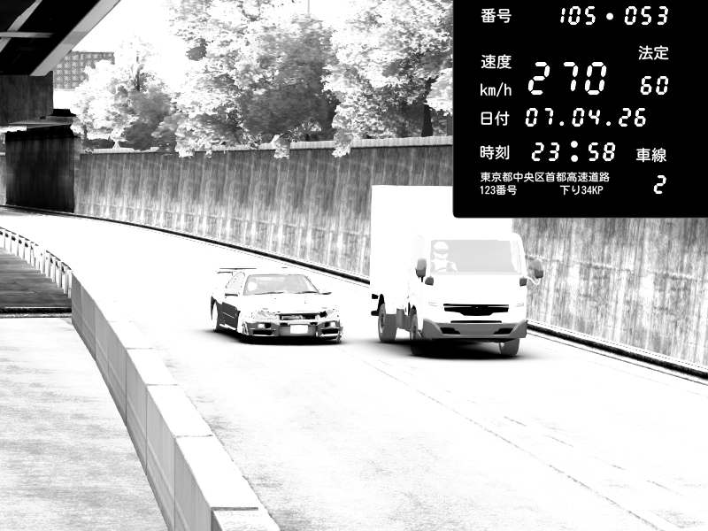 | 2026/04/08 00:10 | C1外回り 京橋 | 240 / 60 km/h | DaBady | Nissan Skyline GT-R R34 Nismo Omori Factory S1 | CAPTURE |