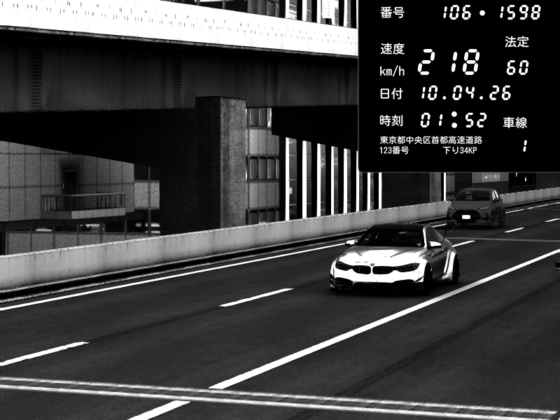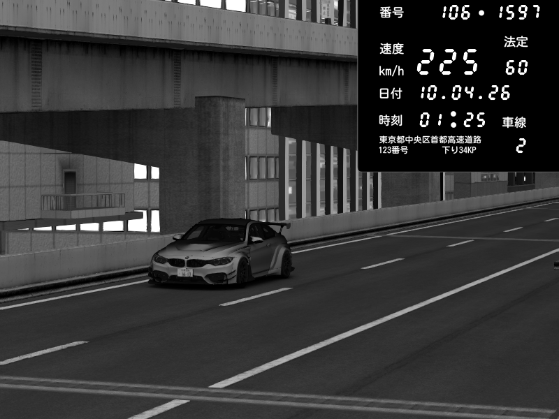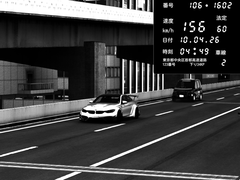 | 2026/04/10 01:52 | 9号下り 木場 | 218 / 60 km/h | Trin | BMW M4 crash.Sp Varis Widebody | CAPTURE |