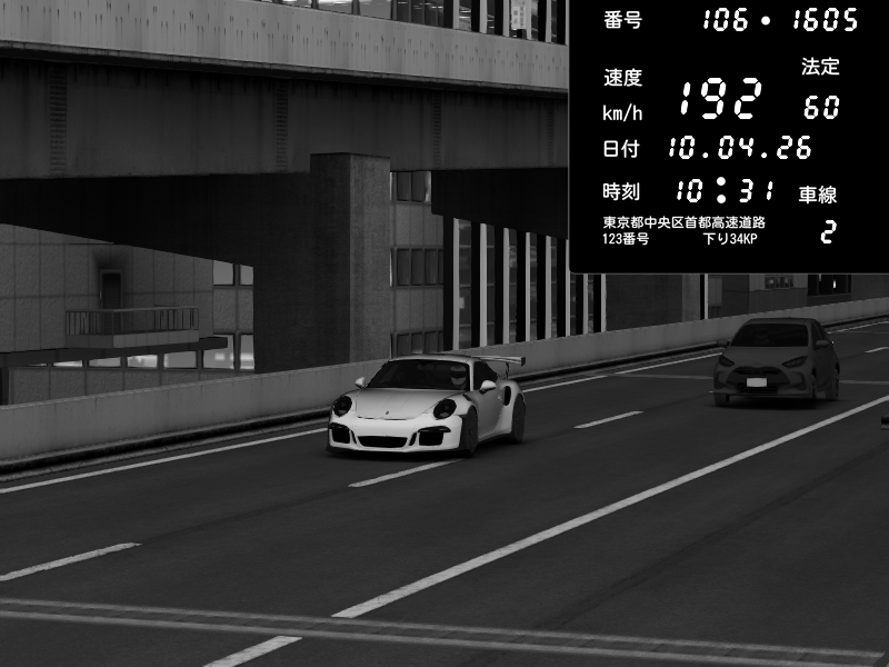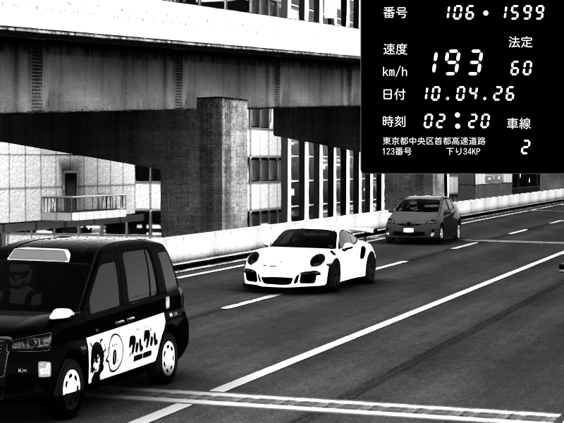 | 2026/04/09 22:51 | 9号下り 木場 | 172 / 60 km/h | Trin | Porsche 911 GT3 RS | CAPTURE |