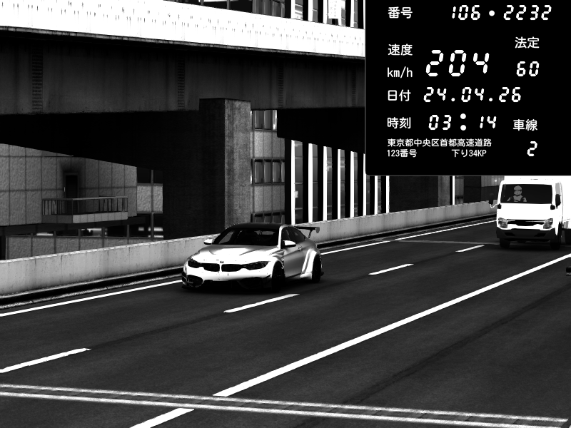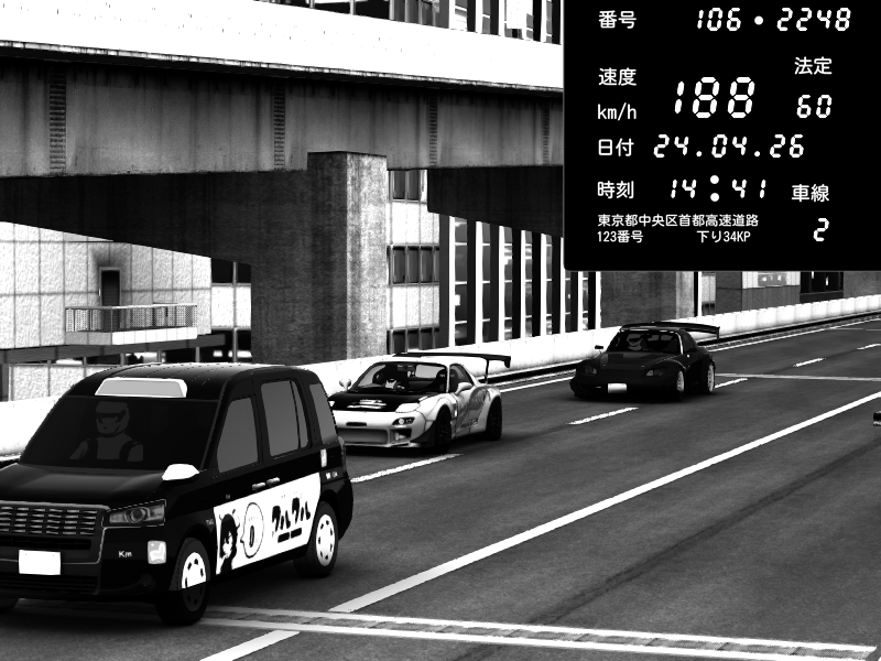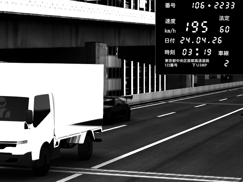 | 2026/04/24 00:58 | 9号下り 木場 | 192 / 60 km/h | Chupa | BMW M4 crash.Sp Varis Widebody | CAPTURE |