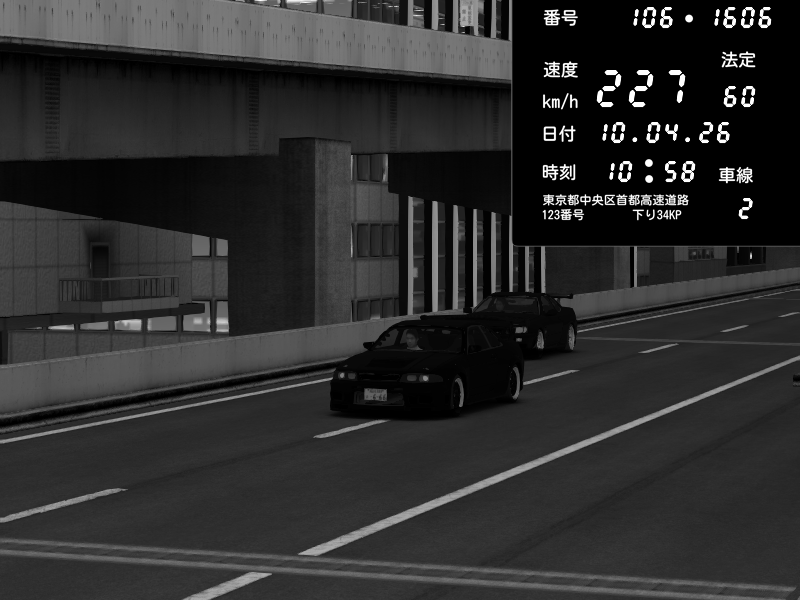 | 2026/04/10 11:07 | 9号下り 木場 | 237 / 60 km/h | 色ハ欲 | Nissan Skyline GTR R33 (S3 - Wangan) | CAPTURE |
