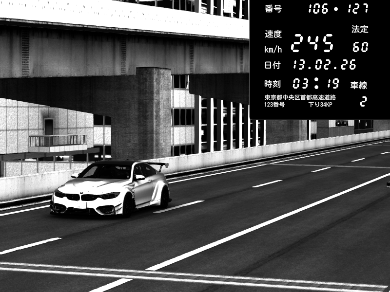 | 2026/02/13 03:19 | 9号下り 木場 | 245 / 60 km/h | Herodudeboy | BMW M4 crash.Sp Varis Widebody | CAPTURE |