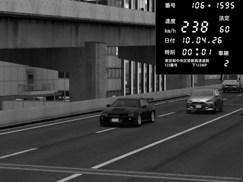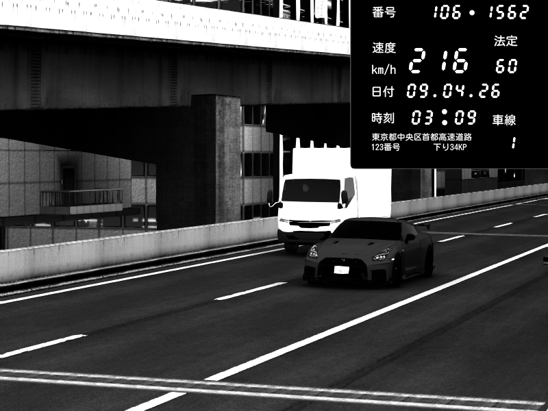 | 2026/04/09 03:09 | 9号下り 木場 | 216 / 60 km/h | DekkerDave | Nissan GT-R NISMO 2017 | CAPTURE |