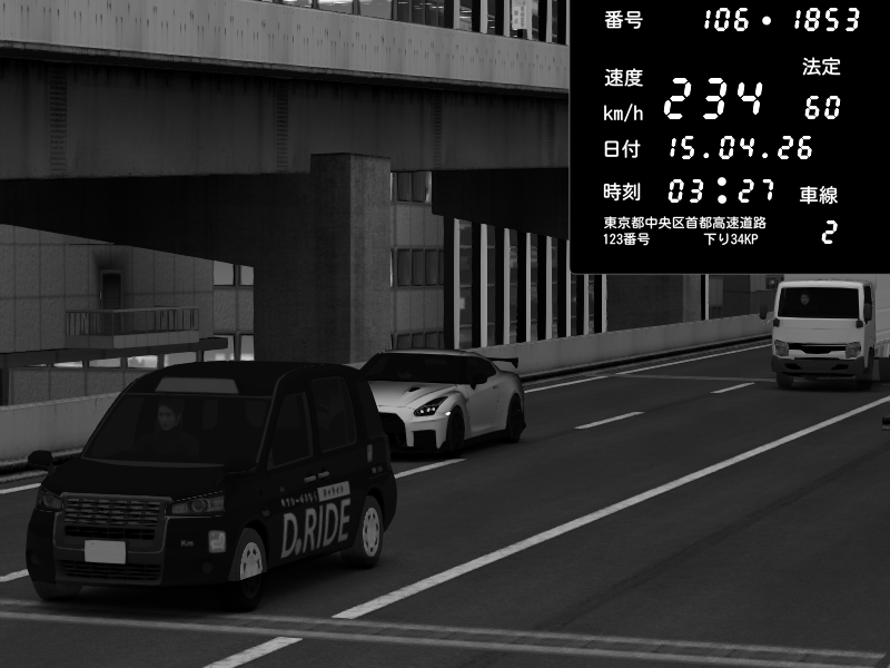 | 2026/04/14 03:30 | 9号下り 木場 | 208 / 60 km/h | SarkoNAJA | Nissan GT-R NISMO 2017 | CAPTURE |