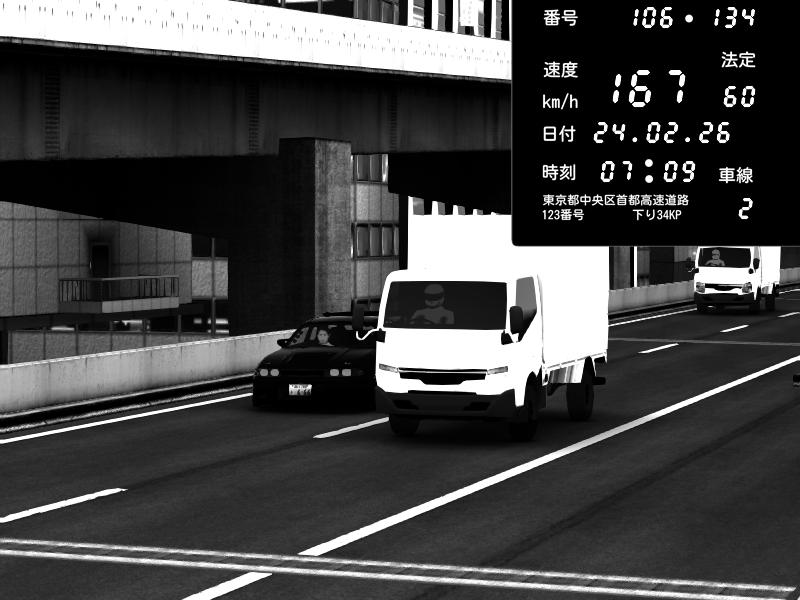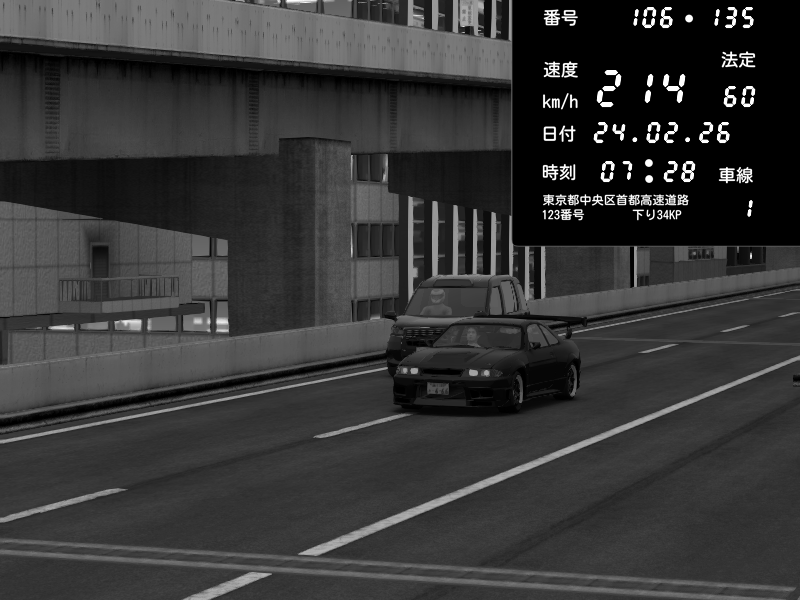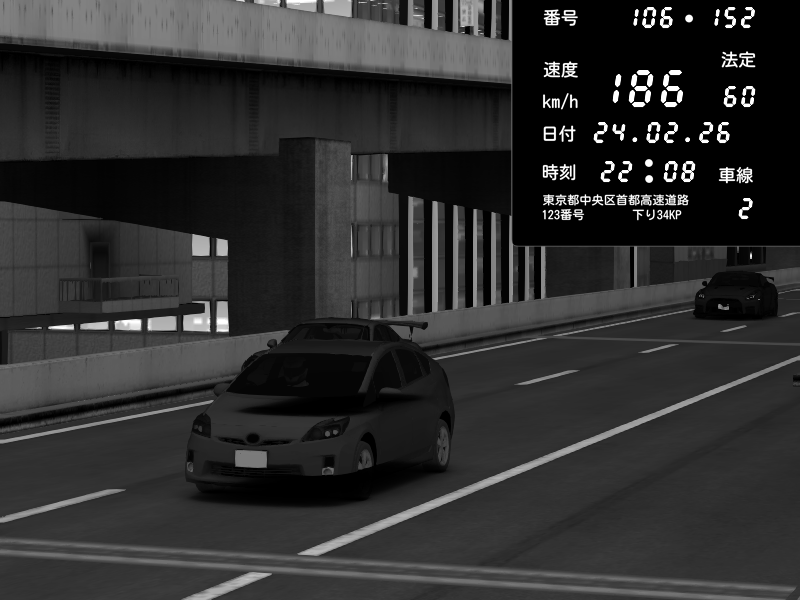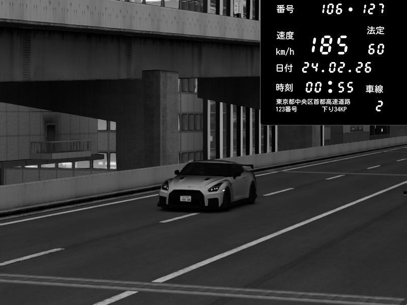 | 2026/02/23 18:32 | 9号下り 木場 | 173 / 60 km/h | Kotone | Nissan GT-R NISMO 2017 | CAPTURE |