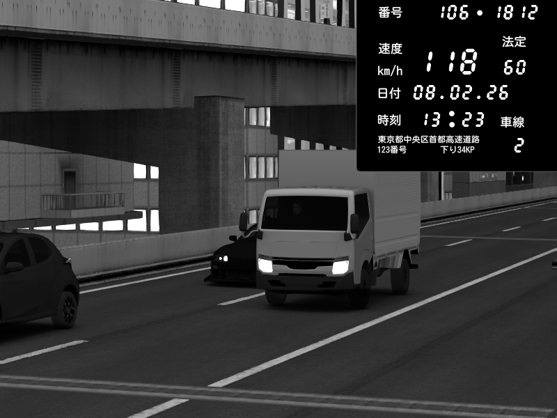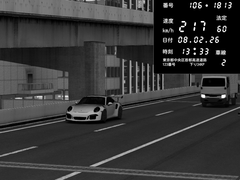 | 2026/02/08 13:33 | 9号下り 木場 | 217 / 60 km/h | 那由他 | Porsche 911 GT3 RS | CAPTURE |