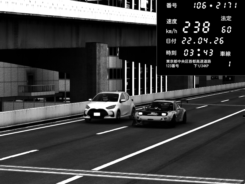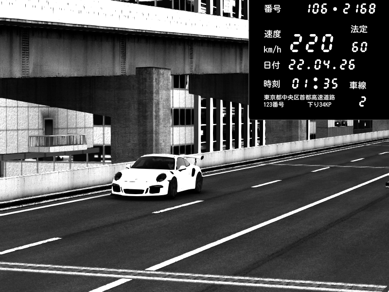 | 2026/04/20 23:40 | 9号下り 木場 | 224 / 60 km/h | Sugamo | Porsche 911 GT3 RS | CAPTURE |