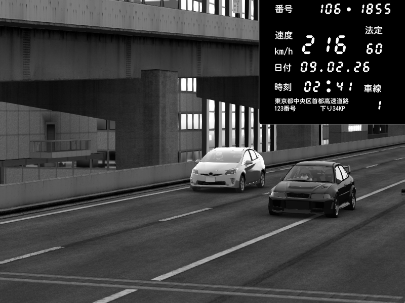 | 2026/02/09 02:41 | 9号下り 木場 | 216 / 60 km/h | Keram Sartep | Mitsubishi Lancer Evolution V Wangan Spec | CAPTURE |