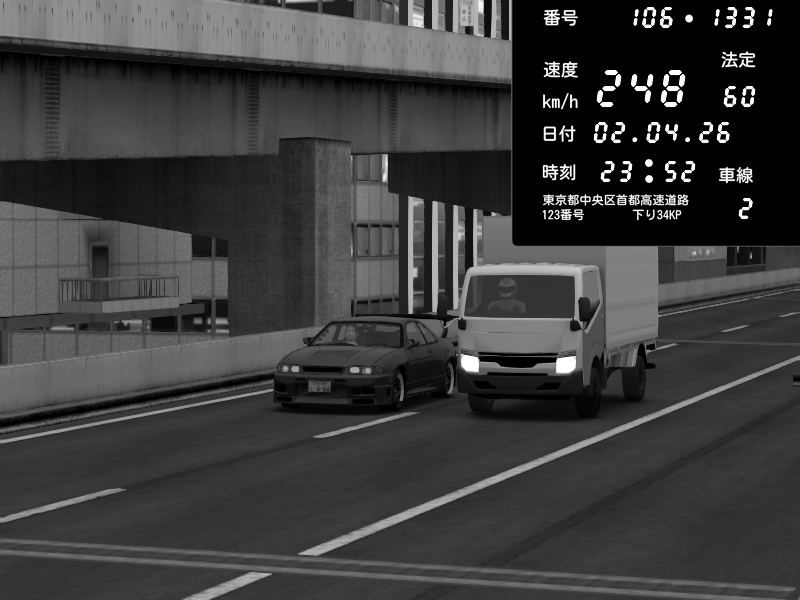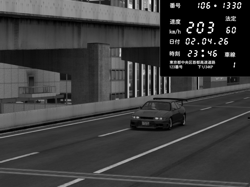 | 2026/04/02 21:06 | 9号下り 木場 | 225 / 60 km/h | Sakamoto | Nissan Skyline GTR R33 (S3 - Wangan) | CAPTURE |