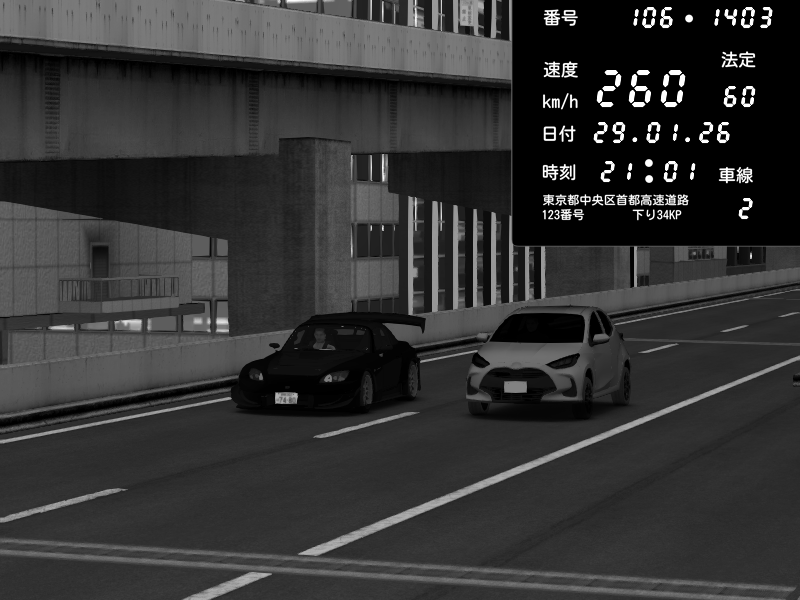 | 2026/01/29 21:01 | 9号下り 木場 | 260 / 60 km/h | G29(LUT)&32TV60Hz3画面老人飲酒中 | Honda S2000 Turbo GT1 Amuse (AP1) | CAPTURE |