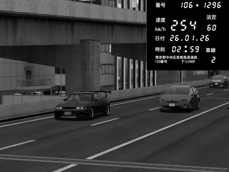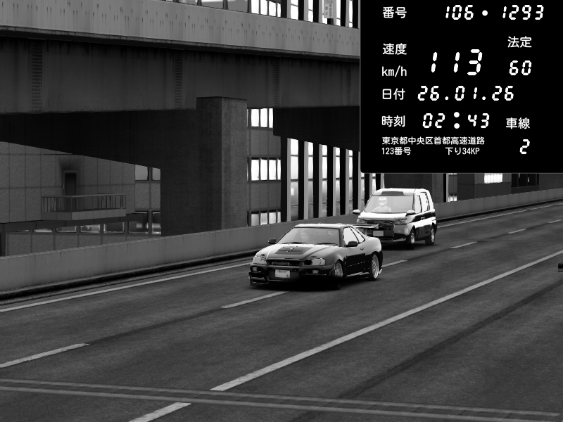 | 2026/01/25 21:38 | 9号下り 木場 | 225 / 60 km/h | the Squale | Nissan Skyline GTR R33 (S3 - Wangan) | CAPTURE |