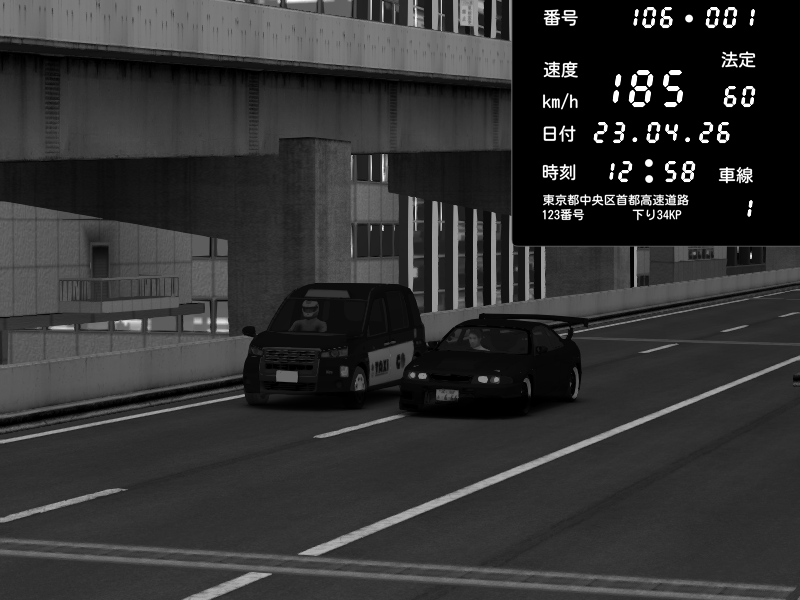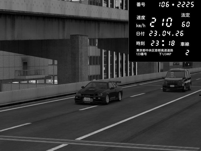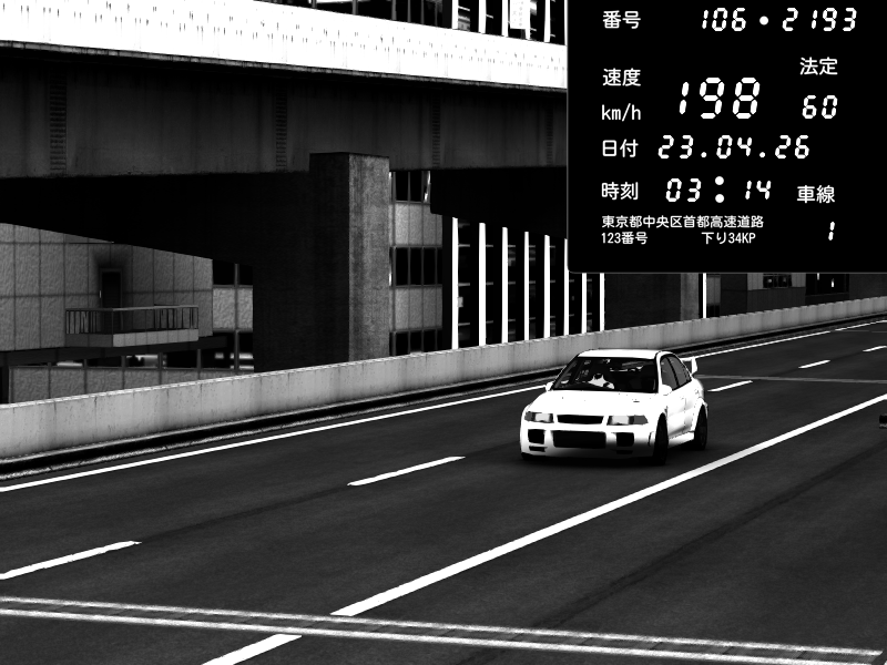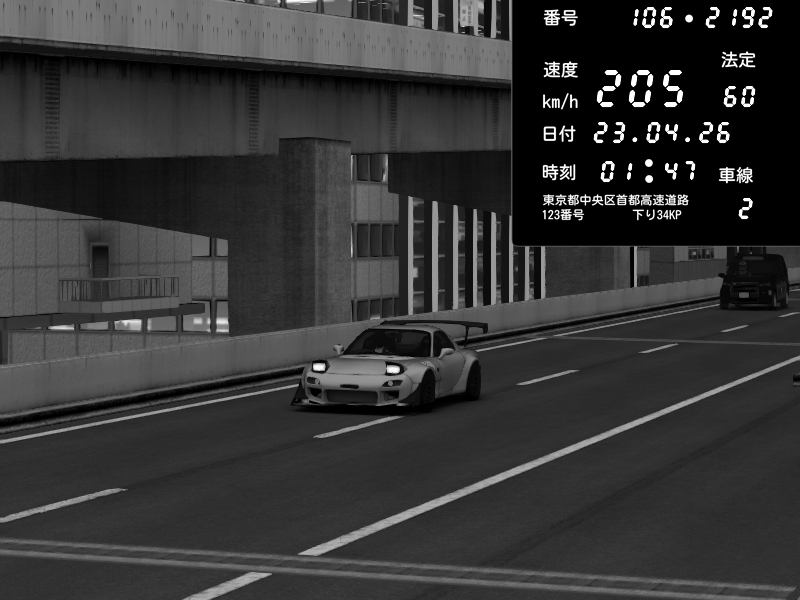 | 2026/04/21 22:50 | 9号下り 木場 | 231 / 60 km/h | GSIX-TevrFrvme | Mitsubishi Lancer Evolution V Wangan Spec | CAPTURE |