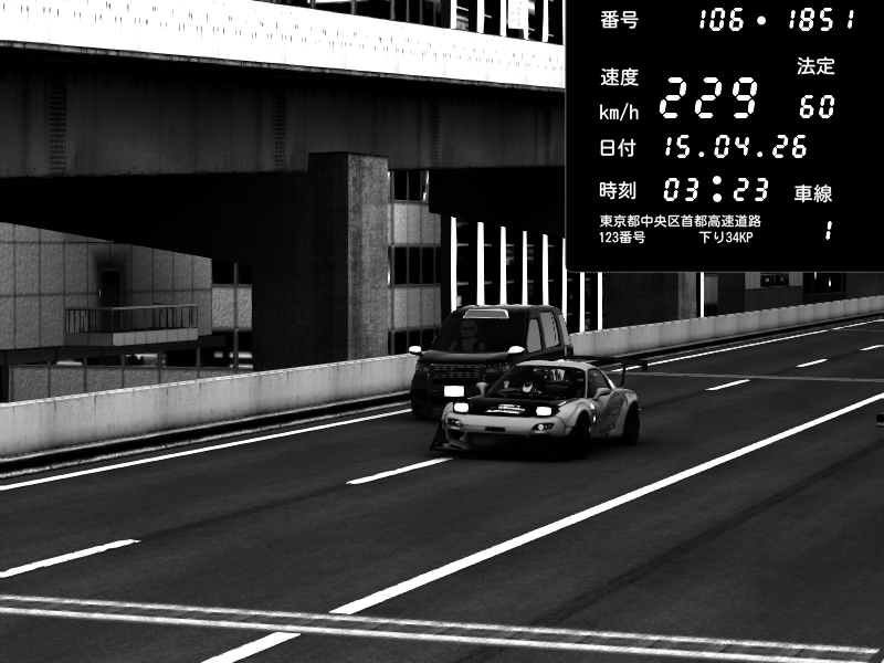 | 2026/04/13 23:28 | 9号下り 木場 | 231 / 60 km/h | sankaku | Honda S2000 Turbo GT1 Amuse (AP1) | CAPTURE |