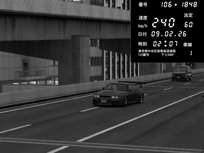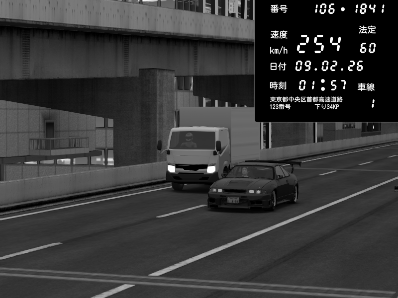 | 2026/02/08 01:33 | 9号下り 木場 | 200 / 60 km/h | Zagro | Nissan Skyline GTR R33 (S3 - Wangan) | CAPTURE |