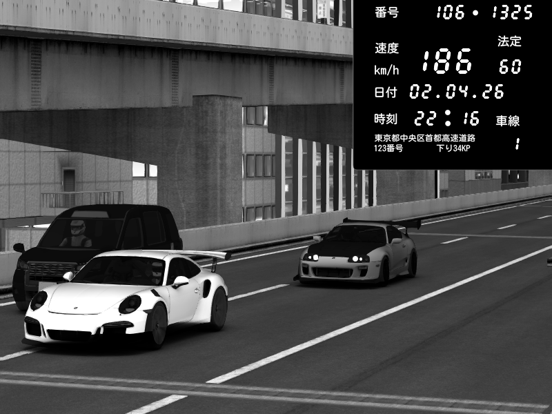 | 2026/04/02 22:16 | 9号下り 木場 | 184 / 60 km/h | cou1 | Porsche 911 GT3 RS | CAPTURE |