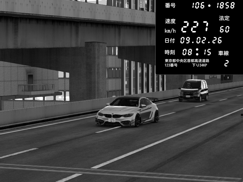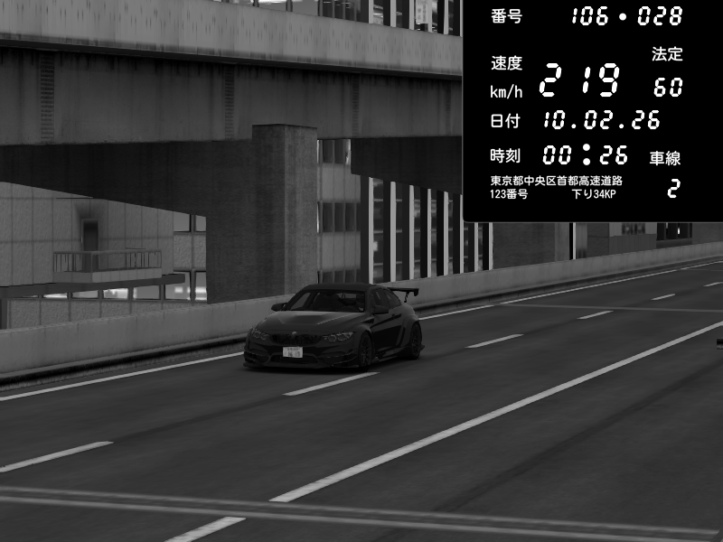 | 2026/02/08 19:27 | 9号下り 木場 | 190 / 60 km/h | 黒白百夜 | BMW M4 crash.Sp Varis Widebody | CAPTURE |