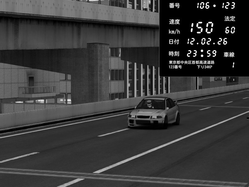 | 2026/02/12 05:09 | 9号下り 木場 | 142 / 60 km/h | gry | Nissan Skyline GTR R33 (S3 - Wangan) | CAPTURE |