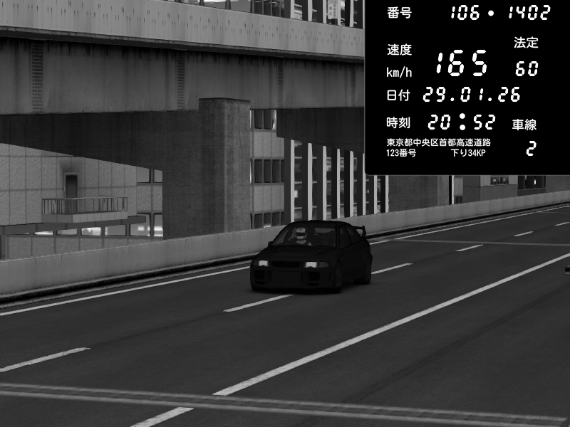 | 2026/01/28 21:33 | 9号下り 木場 | 197 / 60 km/h | ZENN | Mitsubishi Lancer Evolution V Wangan Spec | CAPTURE |