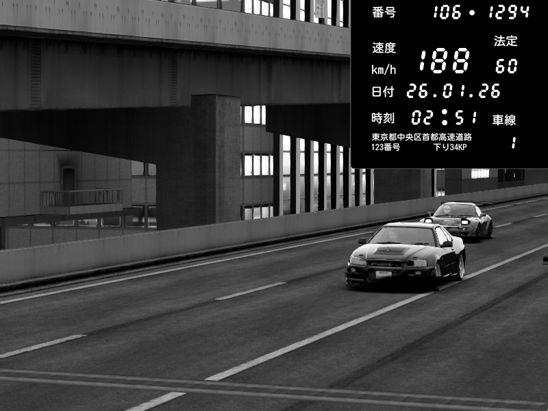 | 2026/01/26 02:51 | 9号下り 木場 | 188 / 60 km/h | Player | Nissan Skyline GT-R R34 Nismo Omori Factory S1 | CAPTURE |